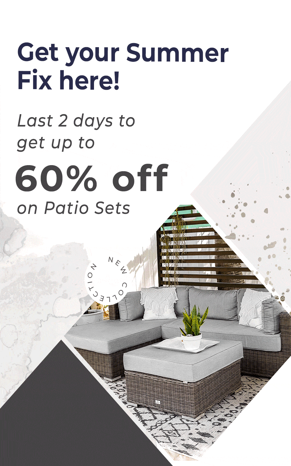 Get up to 60% off on all Patio Sets and Free gifts on all Patio sets!